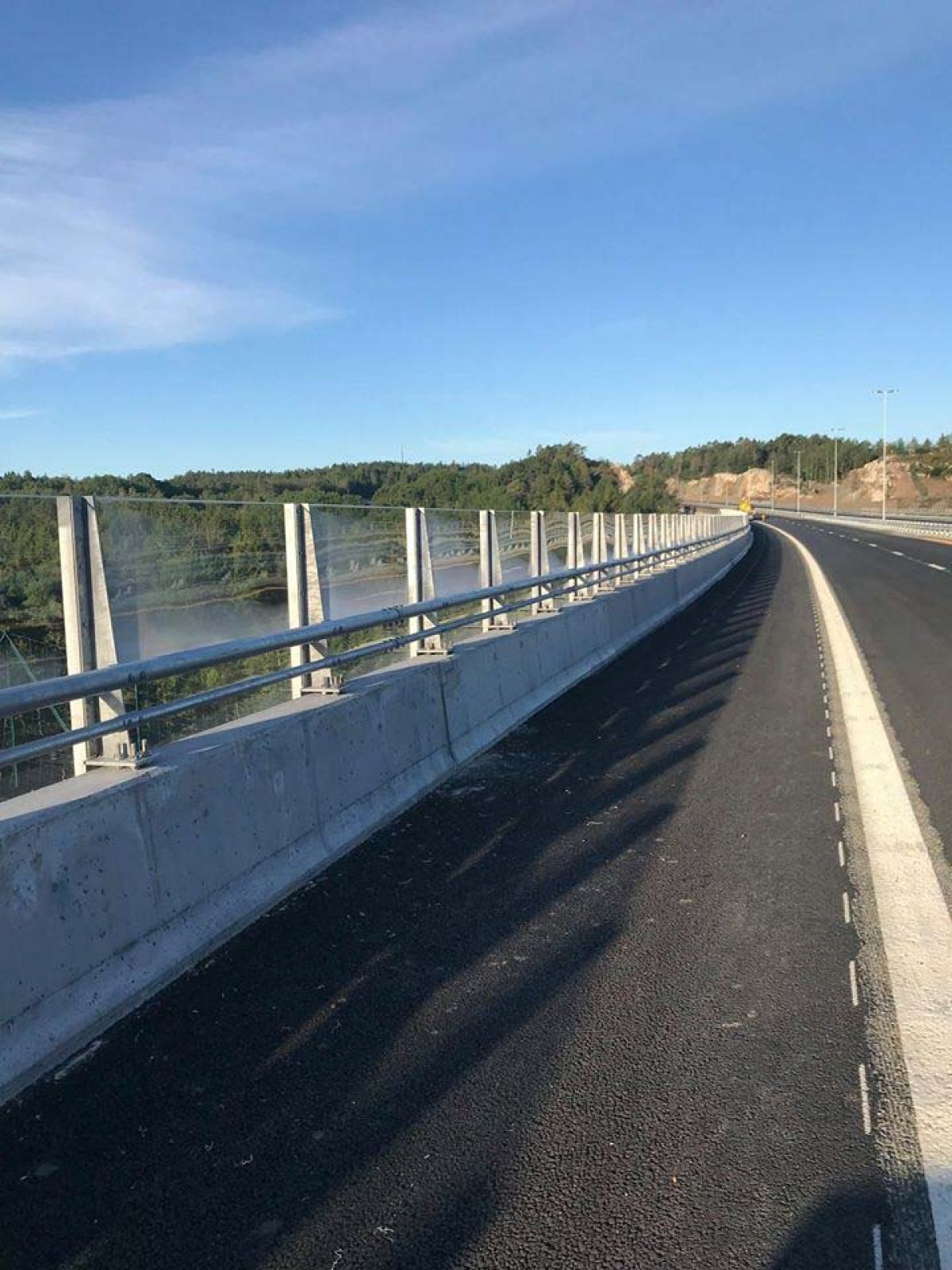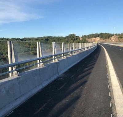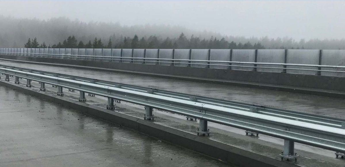 Dette er en forenklet klassisk støyskjermen som er satt opp på mange motorveiprosjekter. Betongrekkverket er plassbygd.