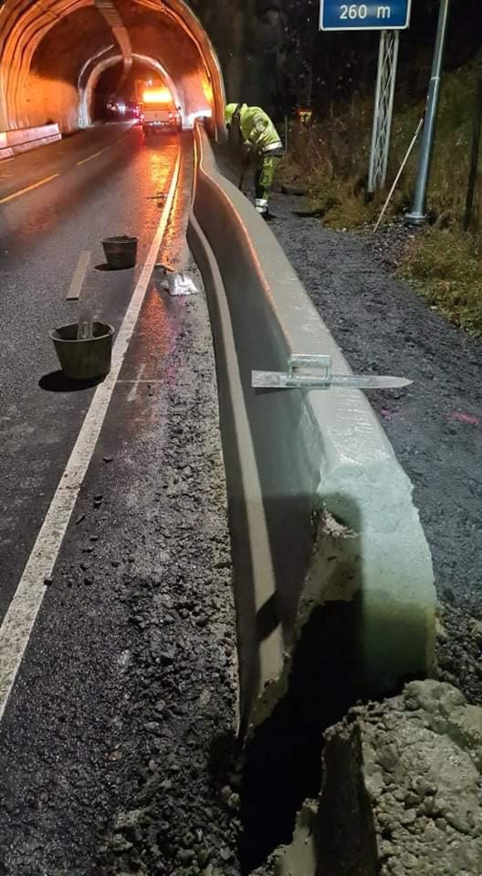 Når det støpes nytt betongrekkverk, er det vanligvis manuell trafikkdirigering. På smale partier kan veien bli stengt, men der det er mulig å passere brukes følgebil.